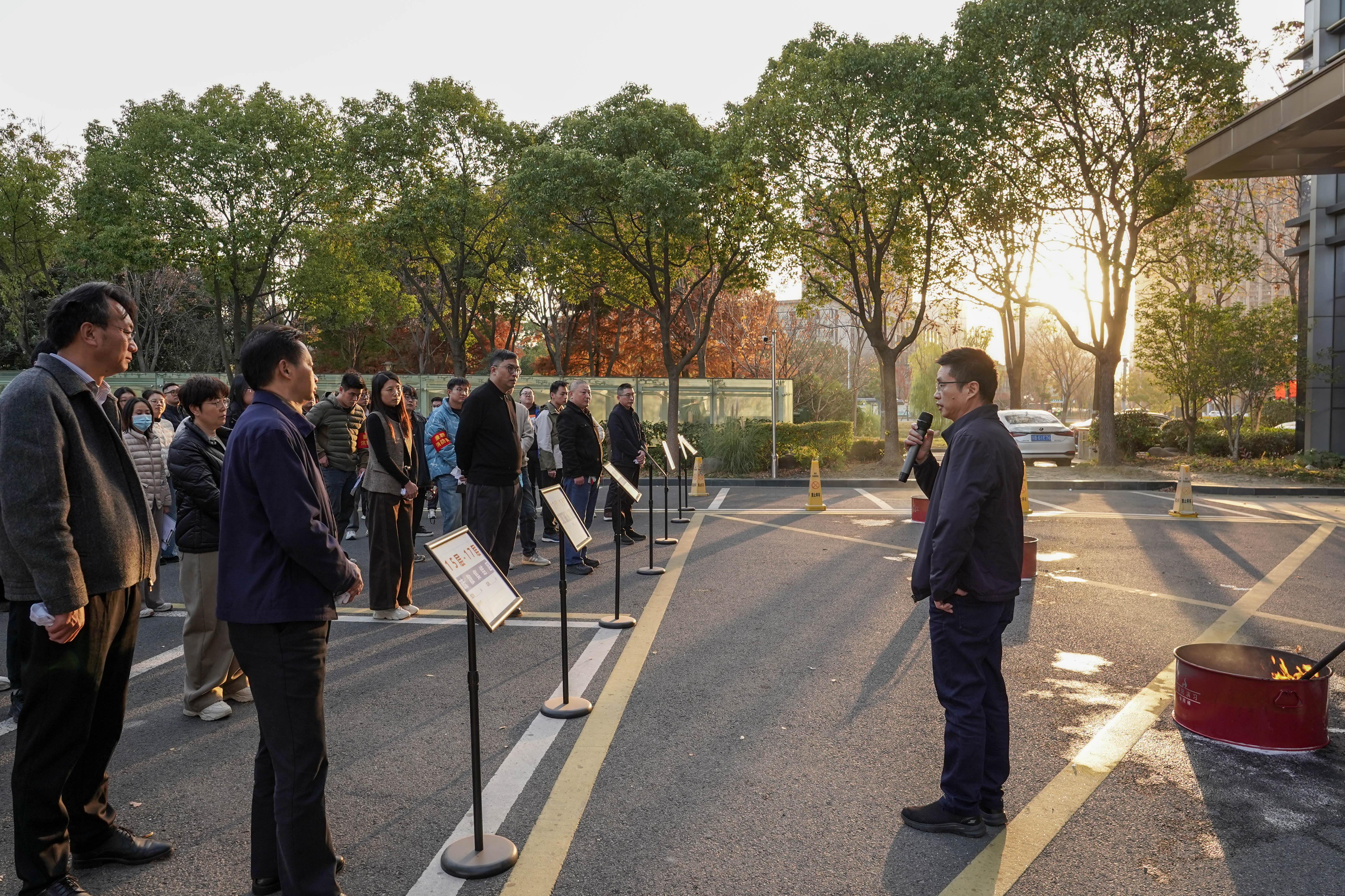 下午4时,随着消防报警系统启动,应急广播发出疏散指令,演练正式拉开帷幕。各楼层人员在疏散引导员的指挥下,用湿毛巾迅速捂住口鼻,沿消防楼梯右侧低姿快速撤离,全程井然有序。全体参演人员均在规定时间内安全疏散至室外指定集合点,并完成以公司和楼层为单元的人员清点汇报。随后,现场开展了锂电池火灾专项演示。在了解锂电池起火特性以及初期灭火操作后,员工们轮流上场,亲手拿起灭火器,对准模拟火源进行扑救,切身体验了成为“第一灭火响应人”的责任与操作流程。