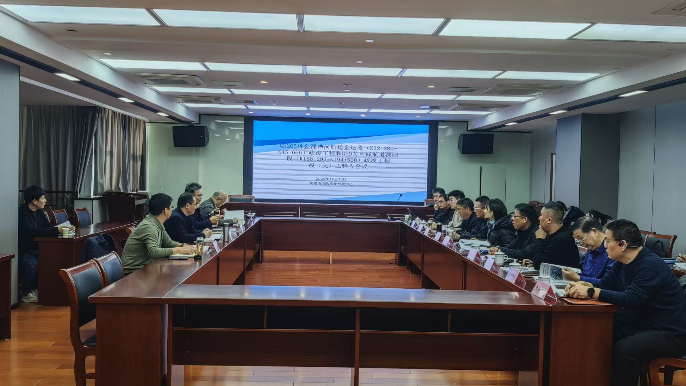 GH9芜申线航道溧阳段疏浚工程是常州市2025年专项养护重点任务之一,工程疏浚里程6.207公里,设计疏浚土方约28.5051万方,合同工期90天。自2025年9月19日正式开工以来,项目部科学组织、精细管理,克服了项目工期紧、弃土区落实难等挑战,于2025年11月20日提前完成全部疏浚任务。经第三方检测单位检测,断面合格率达到100%,实现了安全、优质、高效的建设目标。竣(交)工验收会上,与会人员听取了各参建单位关于工程建设情况的汇报,观看了工程汇报视频,并对工程竣工资料等进行了审查与评议。经讨论,验收组一致认为该工程已按设计及合同要求完成全部建设内容,施工质量符合规范,资料完整、数据准确,同意通过竣(交)工验收。