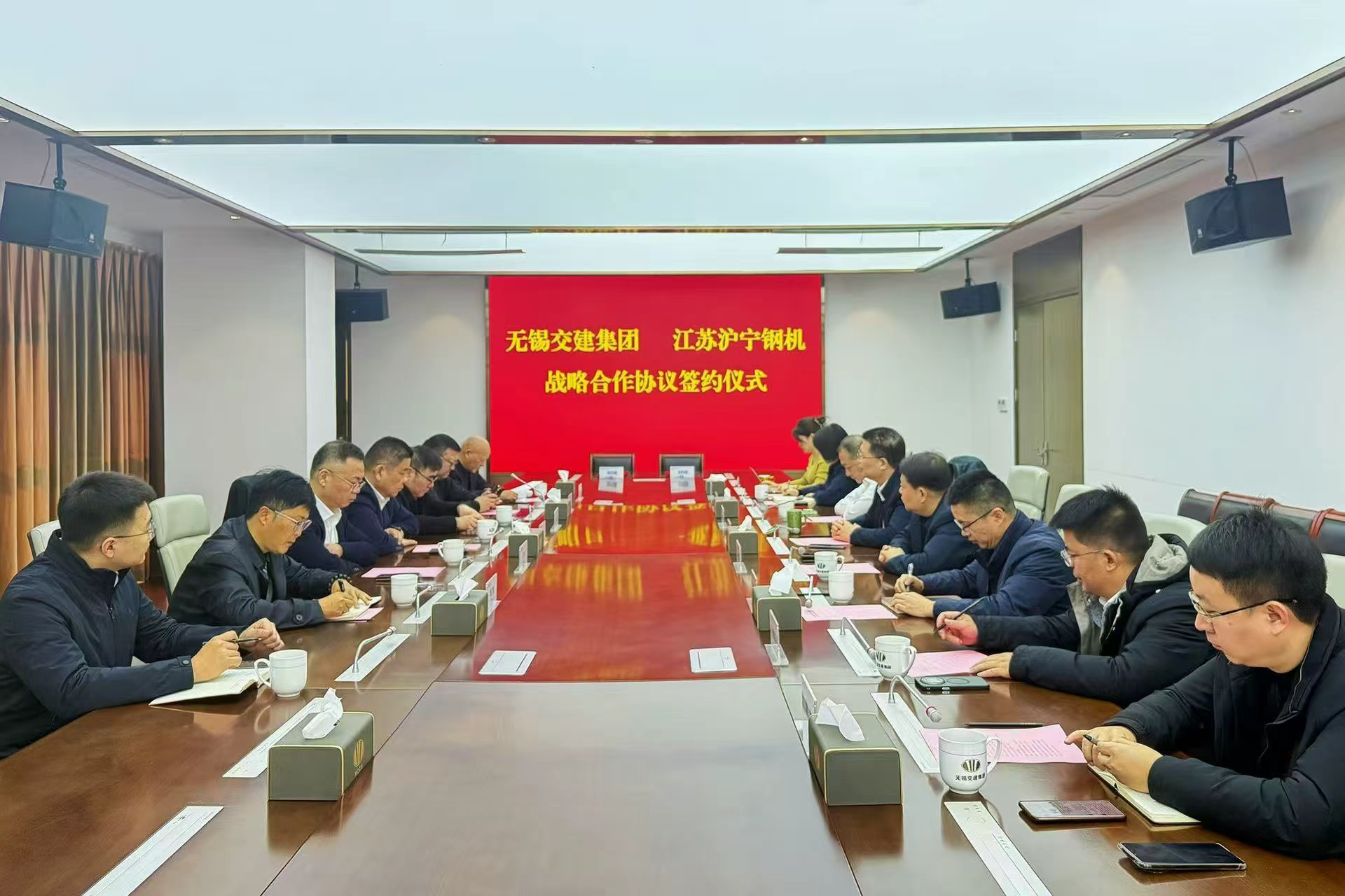 12月28日,无锡交建集团与江苏沪宁钢机股份有限公司签署战略合作协议,市交通集团党委书记、董事局主席许青凯,宜兴市委常委、副市长张敏,市交通集团党委委员、副总裁朱冬青,宜兴市财政局党组书记、局长,周铁镇党委书记吴林,宜兴市住房和城乡建设局党组书记、局长王洪中,阳羡生态旅游度假区党工委委员、张渚镇党委书记马彬强出席签约仪式。无锡交建集团党委书记、董事长蒋海峰,总经理陈光明,副总经理袁霞、胡未艾、达杨,江苏沪宁钢机党总支书记、董事长王寅大,副总经理李仁革等参加活动。
