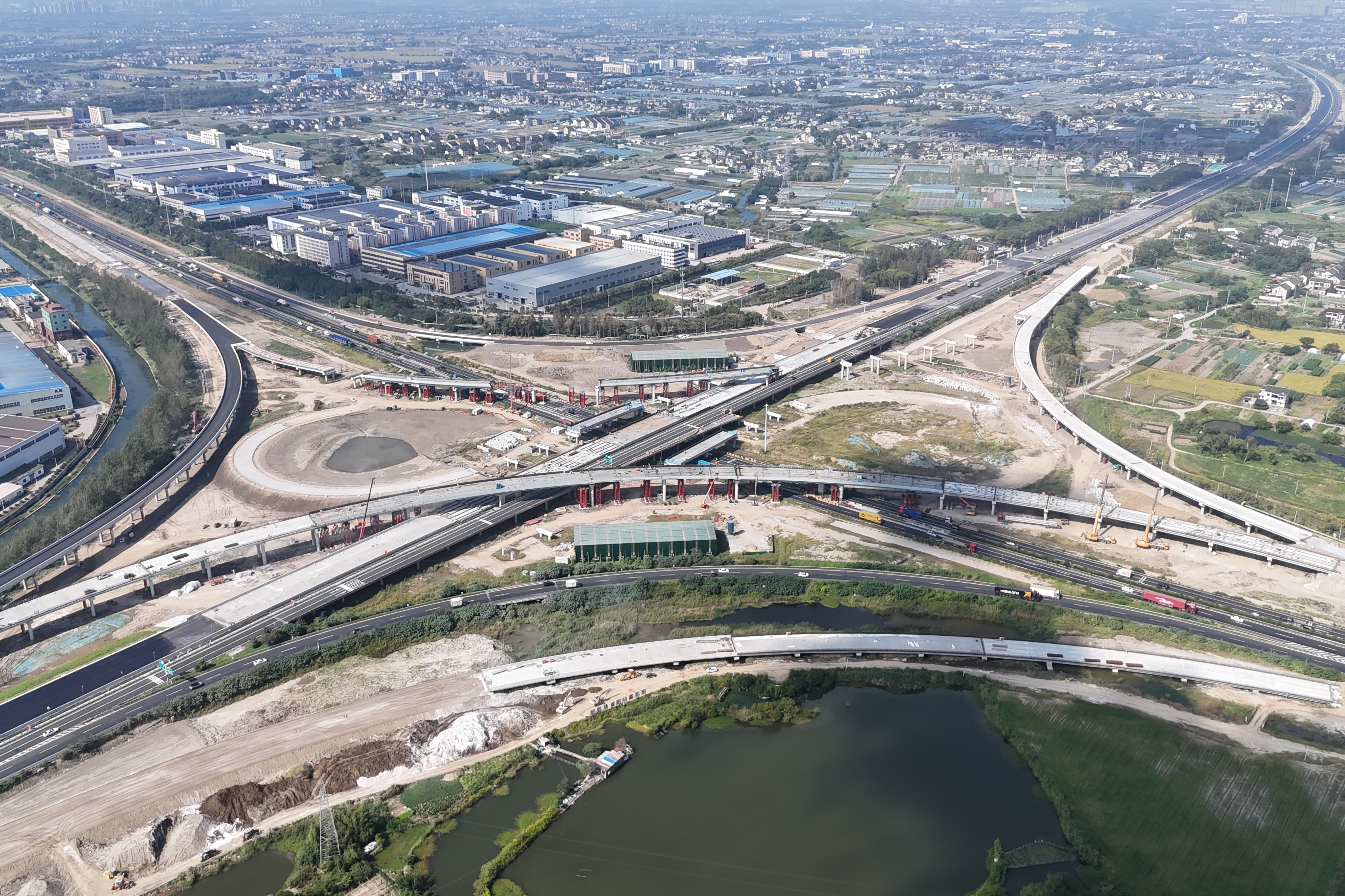董浜枢纽B匝道钢箱梁上跨既有道路与桥梁,是本标段施工技术难度高、安全管控压力大的关键控制节点之一。面对交通组织复杂、吊装空间受限、精度要求严苛等多重挑战,项目管理人员以高度的责任感和使命感,国庆中秋“双节”期间坚守岗位,科学筹划,精心组织。施工过程中,项目部坚持“安全至上、质量为本”原则,严格执行专项施工方案,强化过程监控与精细作业,最终安全、优质、高效地完成了该段钢箱梁架设任务。