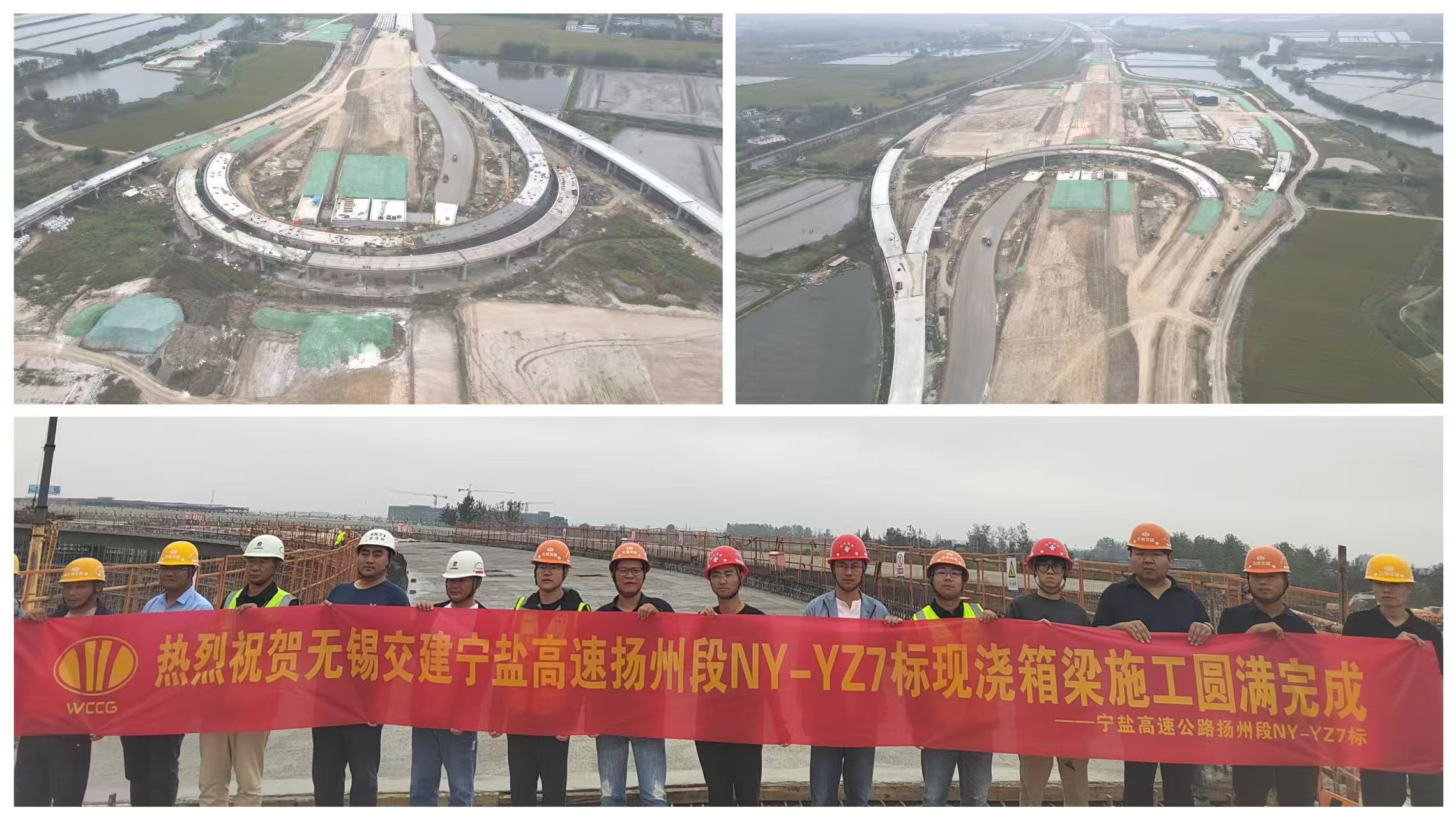 10月13日,宁盐高速NY-YZ7标重点控制性工程卸甲互通服务区现浇箱梁施工圆满完成,为后续桥面系施工及全线贯通奠定了坚实基础。