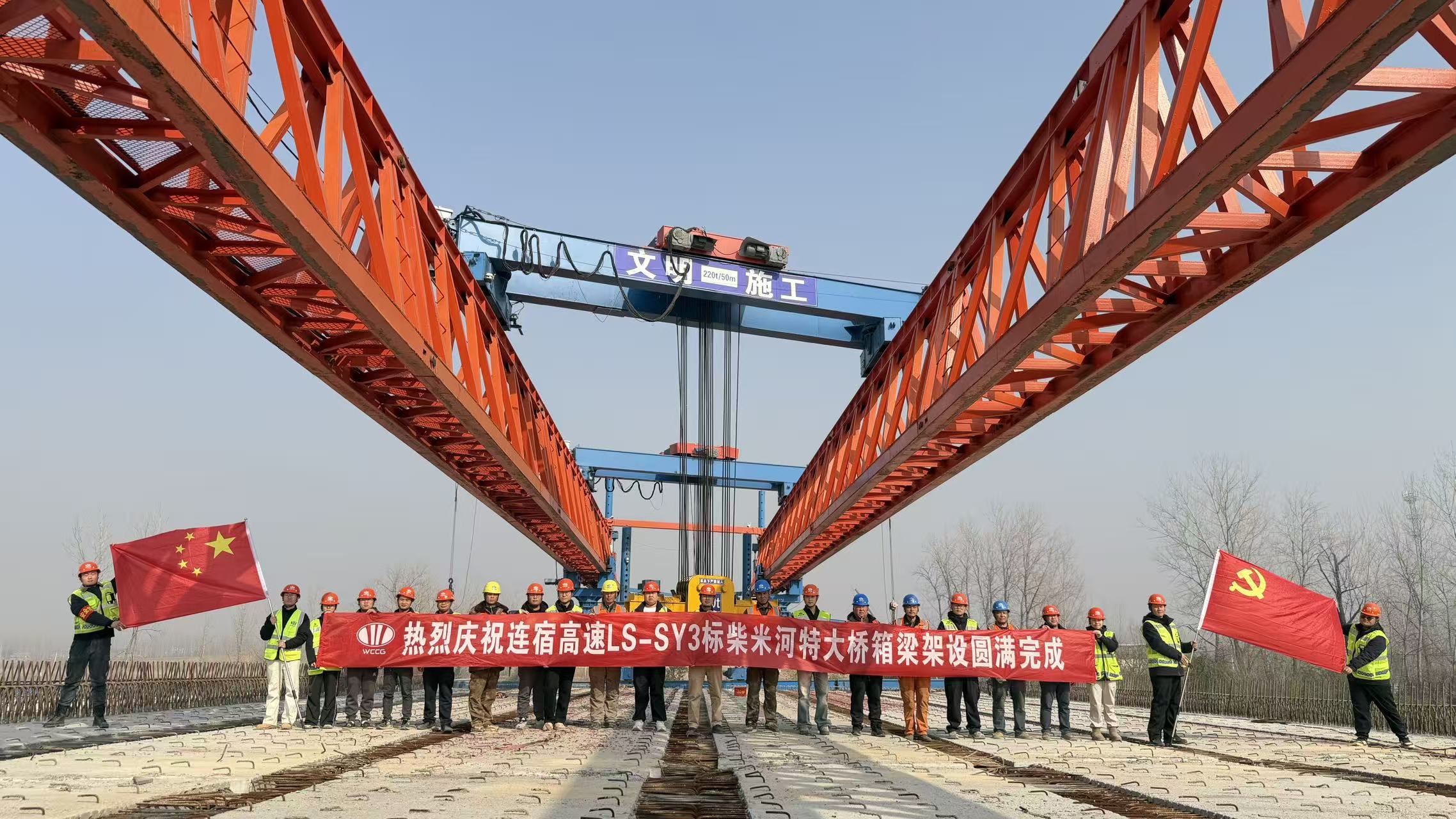1月15日,随着最后一片长30米、重达104吨的预制箱梁精准落位,连宿高速LS-SY3标柴米河特大桥箱梁架设圆满完成,标志着项目建设取得突破性进展。